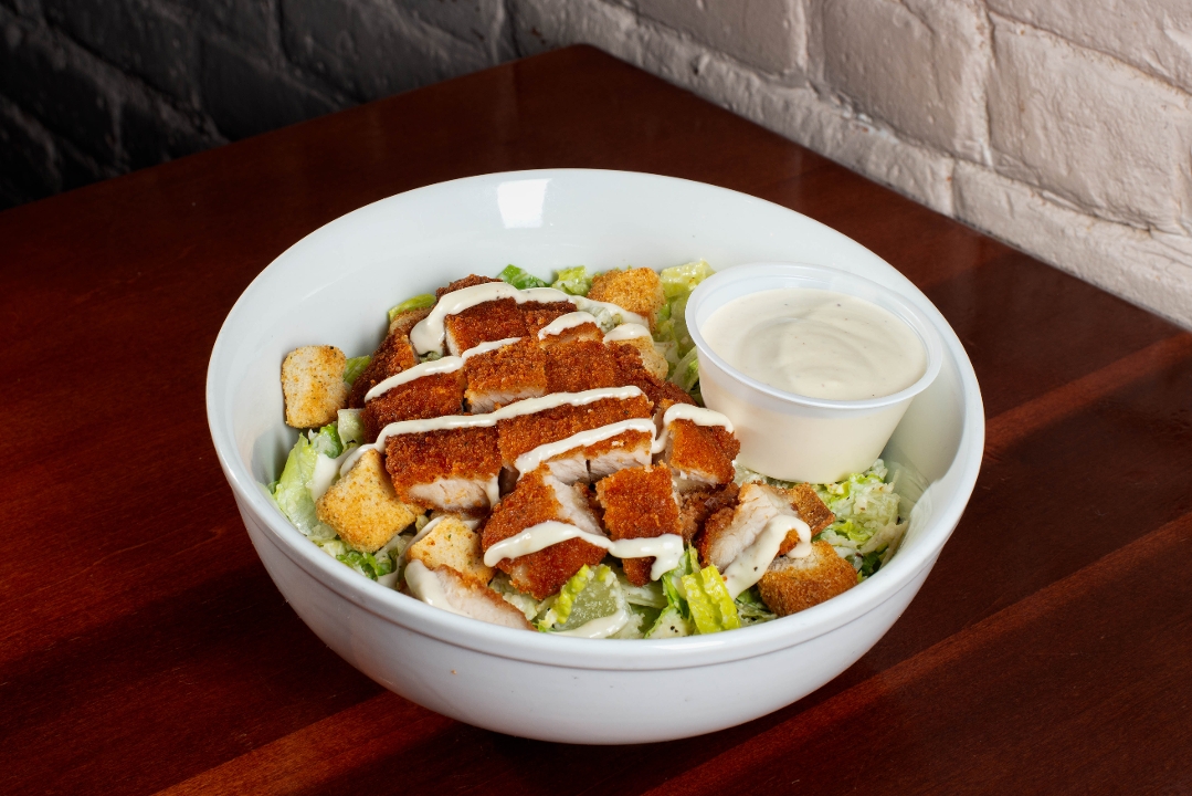 Chicken Cutlet, Romaine, Parmesan, Garlic Parmesan Croutons, Caesar Dressing