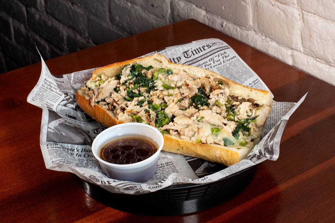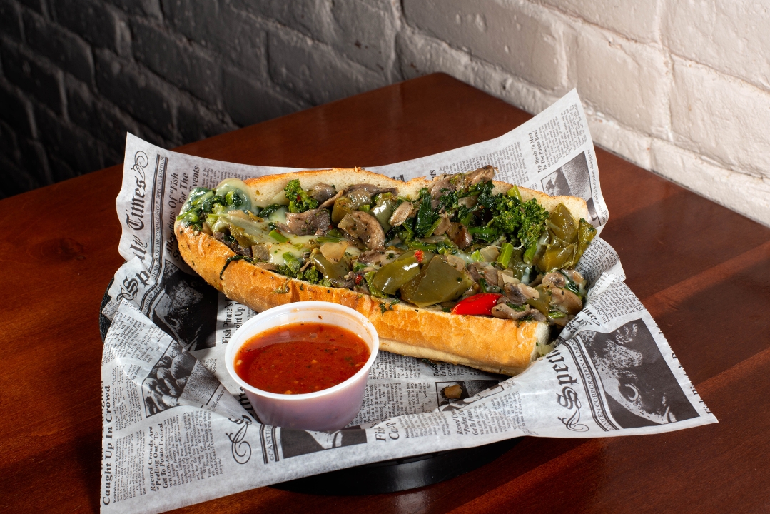 Broccoli Rabe, Sweet Peppers, Mushrooms, Fried Onions, Cooper Sharp; Marinara on the Side