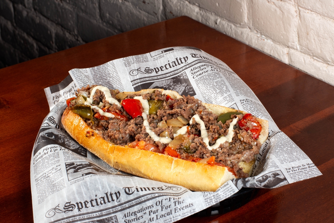 Garlic Aioli, Grilled Tomatoes, Sweet Peppers, Fried Onions, Provolone