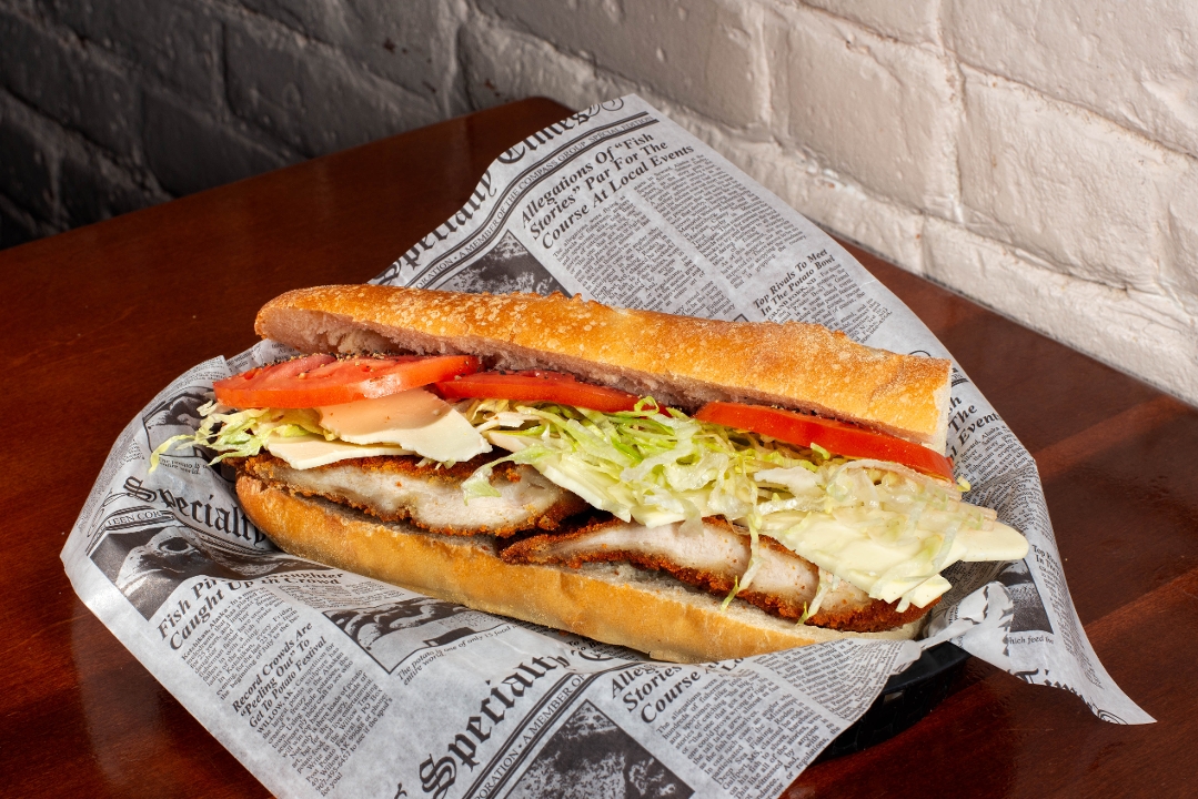 Chicken Cutlet, Shredded Iceberg, Tomato, Cooper Sharp American; Add Garlic Parmesan Spread $1 THIS IS A ROOM TEMP SANDWICH LIKE A HOAGIE!!!