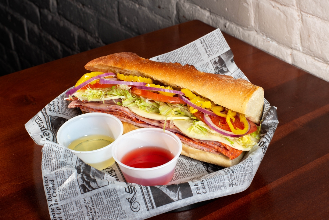 Mortadella, Genoa Salami, Ham, Pepperoni, Mild or Sharp Provolone, Shredded Iceberg, Tomato, Red Onions, Banana Peppers, Oregano, Side of Oil & Vinegar