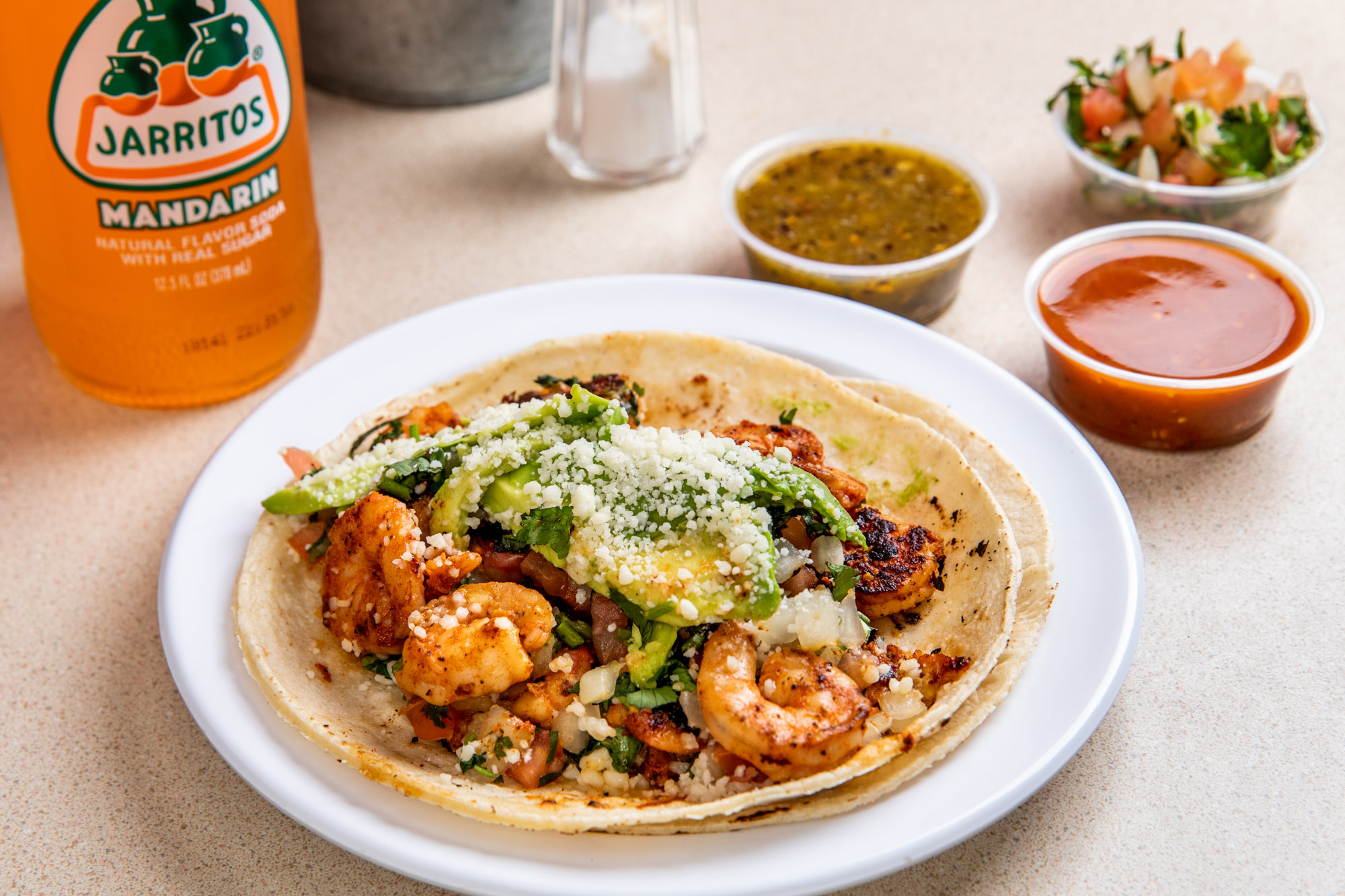 Taco, tostada, & empanada. Choice of 2 of our homemade sauces: super spicy salsa verde, hot salsa roja, guacamole creamy sauce, or pico de gallo. Empanadas only have option of beef, chicken, or cheese.