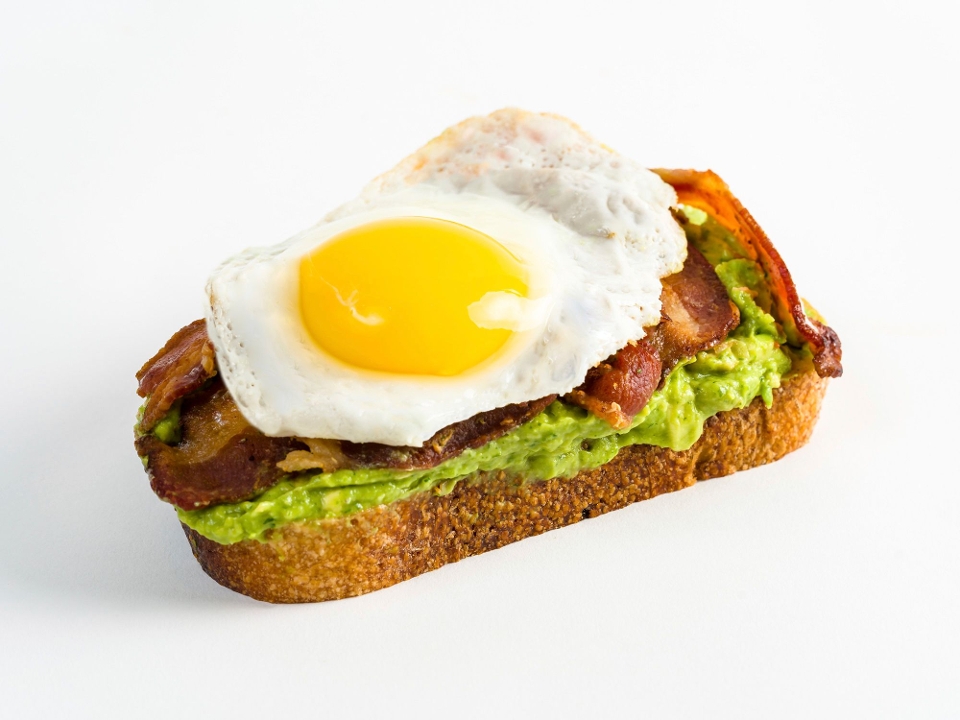 Egg Whites, Avocado, Bacon & America Cheese on Whole Wheat Toast.