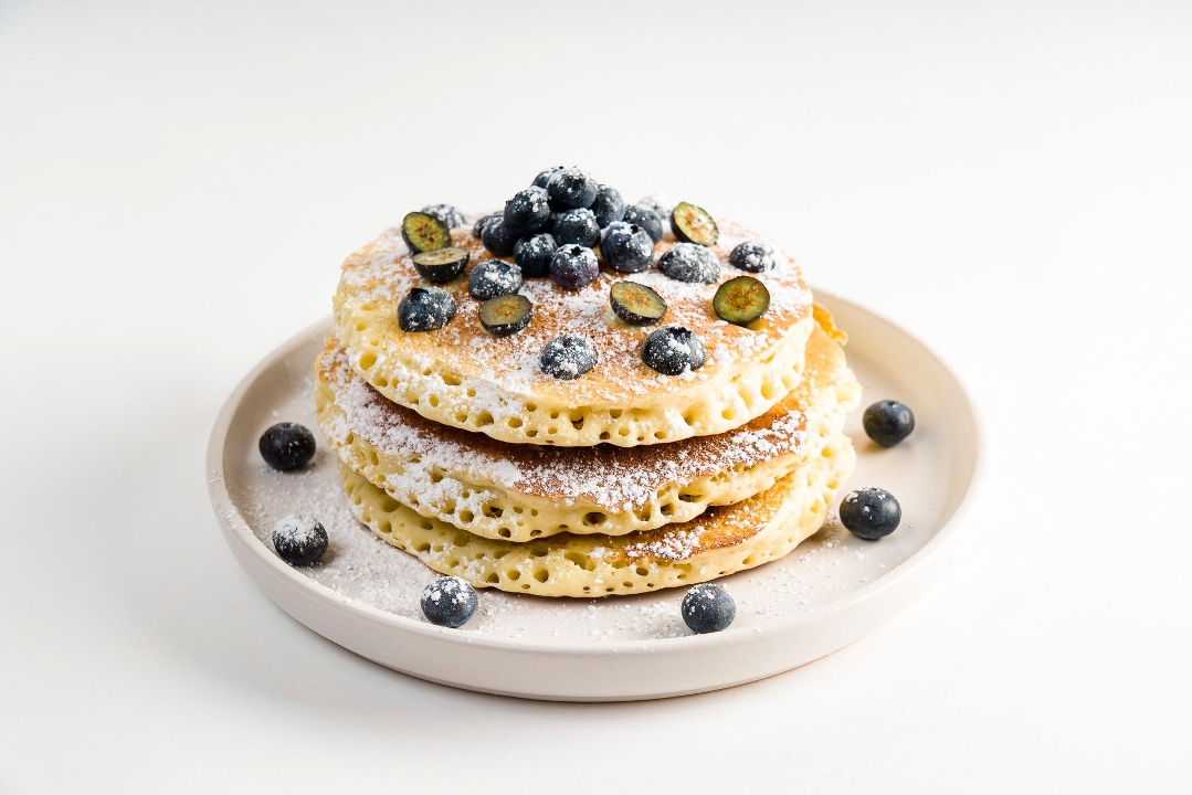 Stack of Buttermilk Pancakes with Blueberries & Powdered Sugar