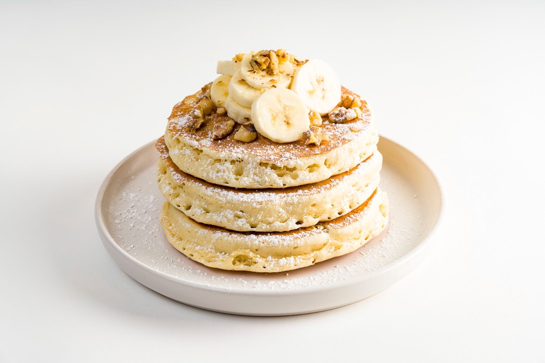 Stack of Buttermilk Pancakes with Bananas & Powdered Sugar