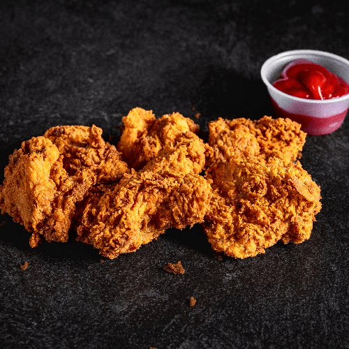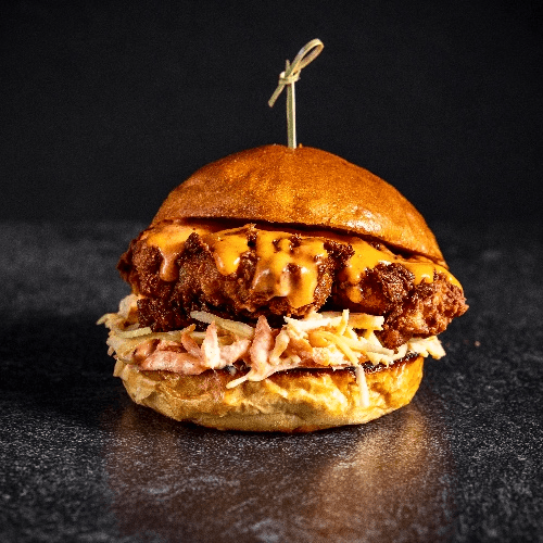 CHICKEN, COLESLAW, SPICY SIN SAUCE