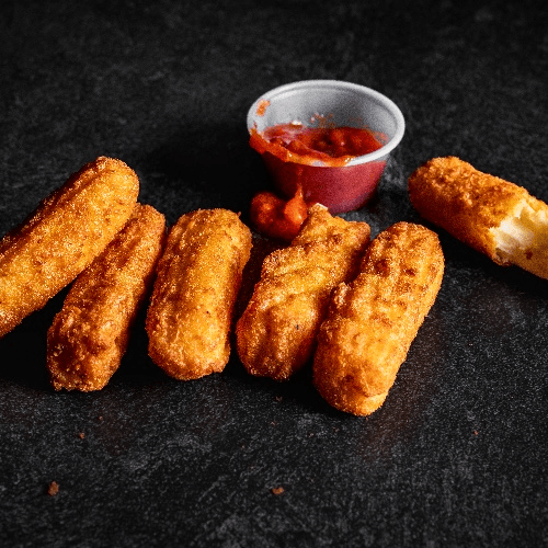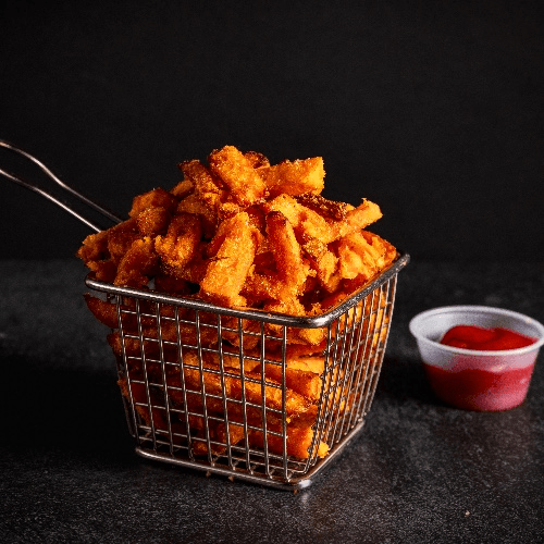 Skin-on Fries topped with pulled ribeye S.I.N. Sauce, Sweet Chili Sauce and BBQ Sauce