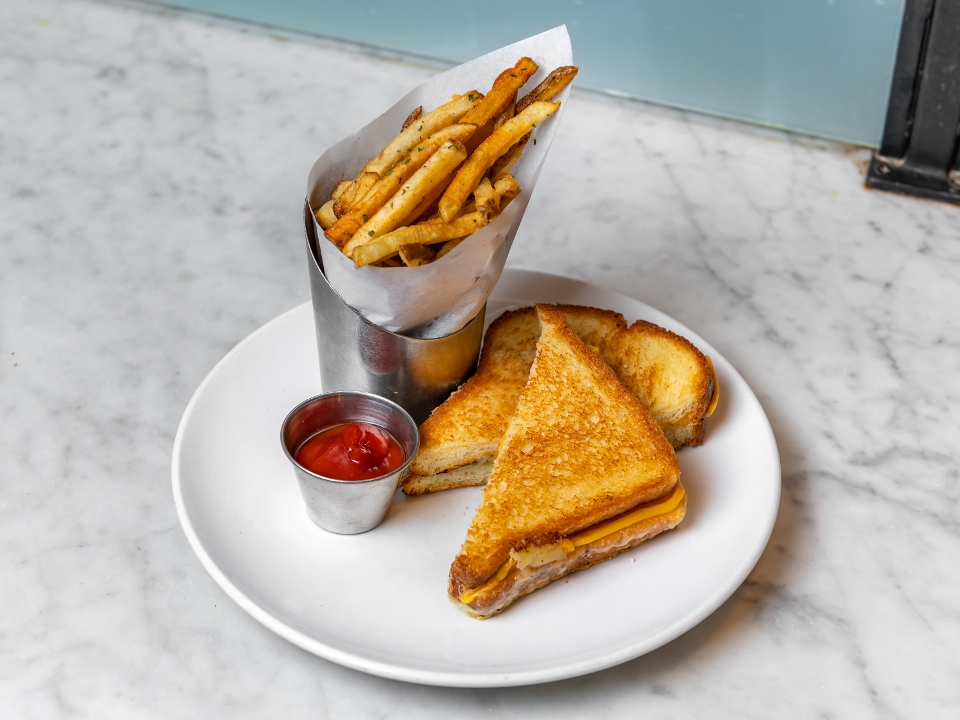 Aged cheddar, American, challah bread., herb fries.