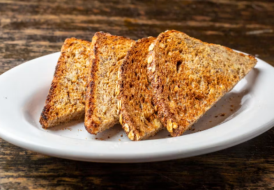 Sunny-side eggs, whole wheat toast.
