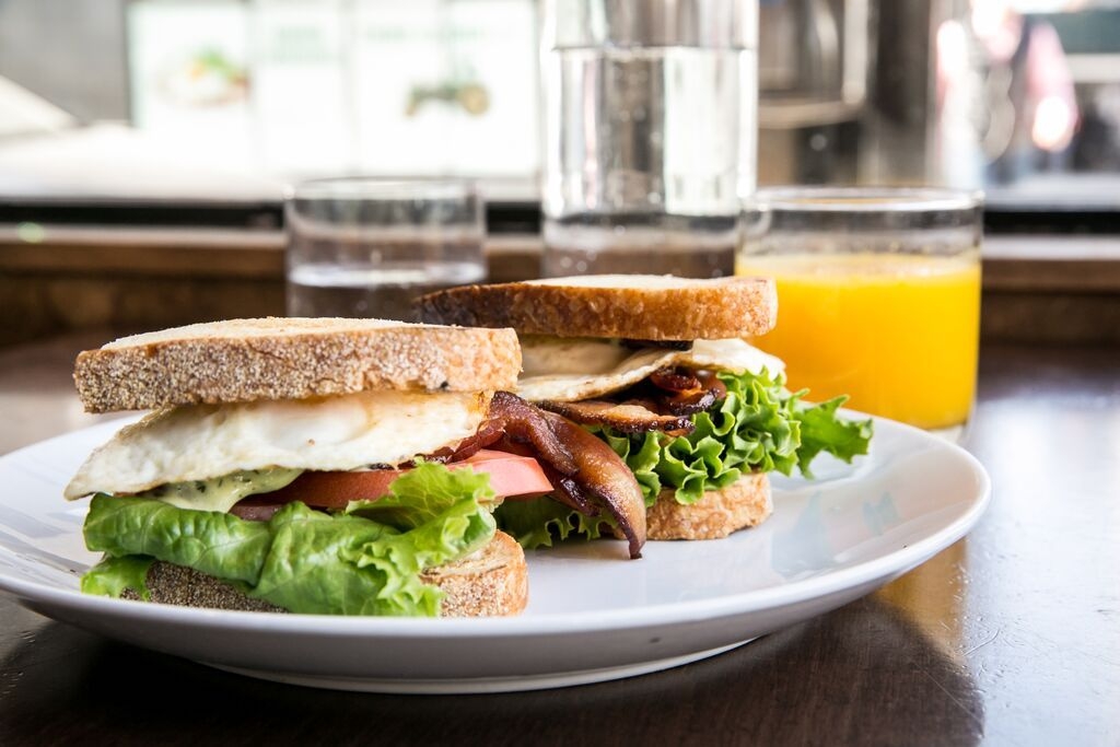 Bacon, over easy egg, lettuce, tomato, herb aioli, grilled sourdough w/ potato hash