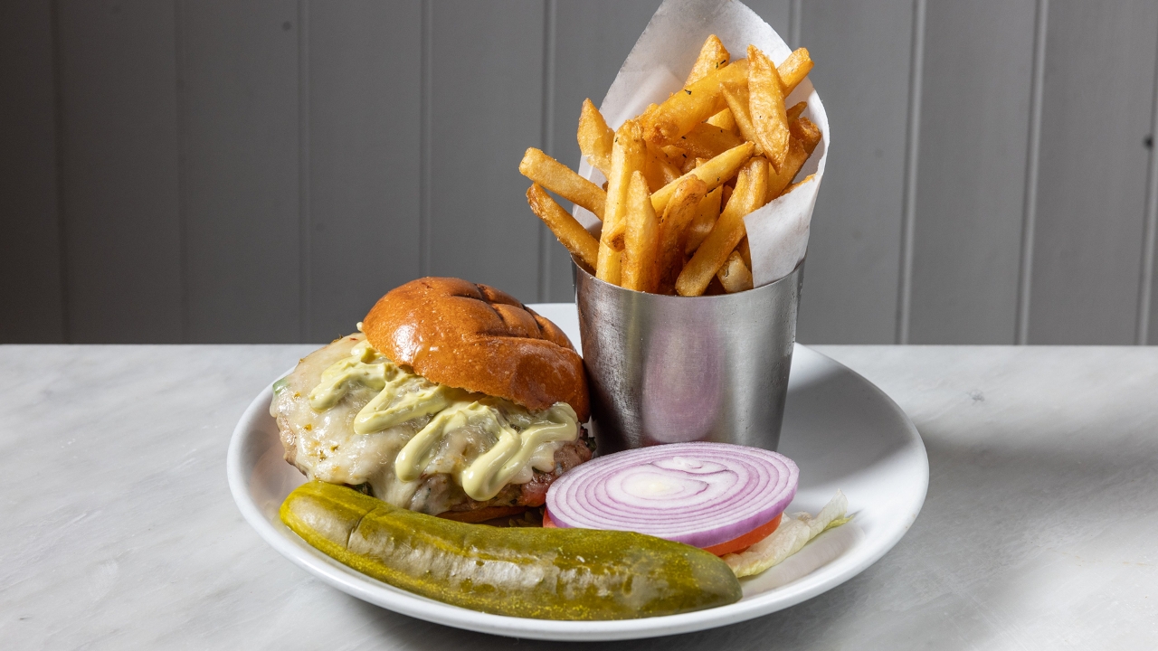 Pepper Jack cheese, avocado aioli, herb fries.
