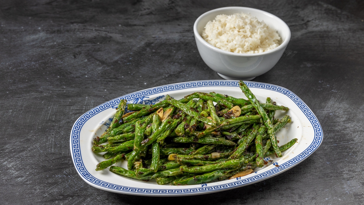 Cauliflower, garlic, scallions, red chili pepper, stir fried in light brown sauce. Spicy. (Vegan)