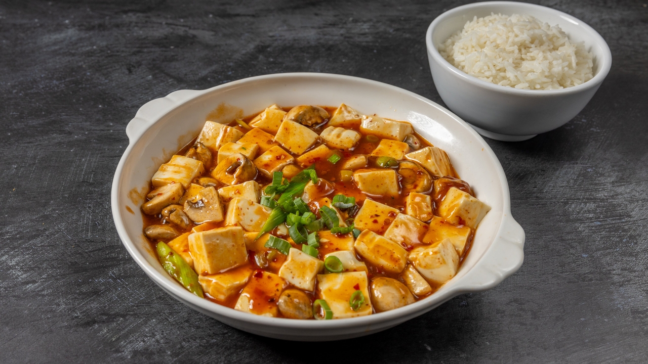 Soft tofu in spicy szechuan sauce. Choice of minced pork or mushroom. Spicy. (Can be vegan)