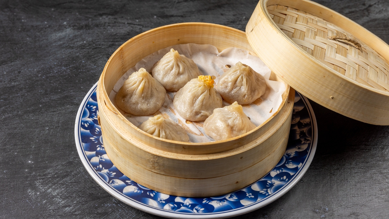 6 pieces. Soup Dumplings with Pork and crabmeat.