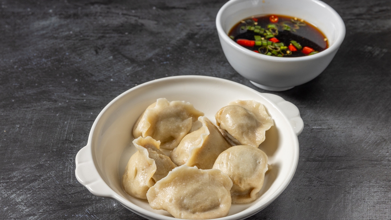 6 pieces. Chef's special chicken dumplings with a spicy vinaigrette.