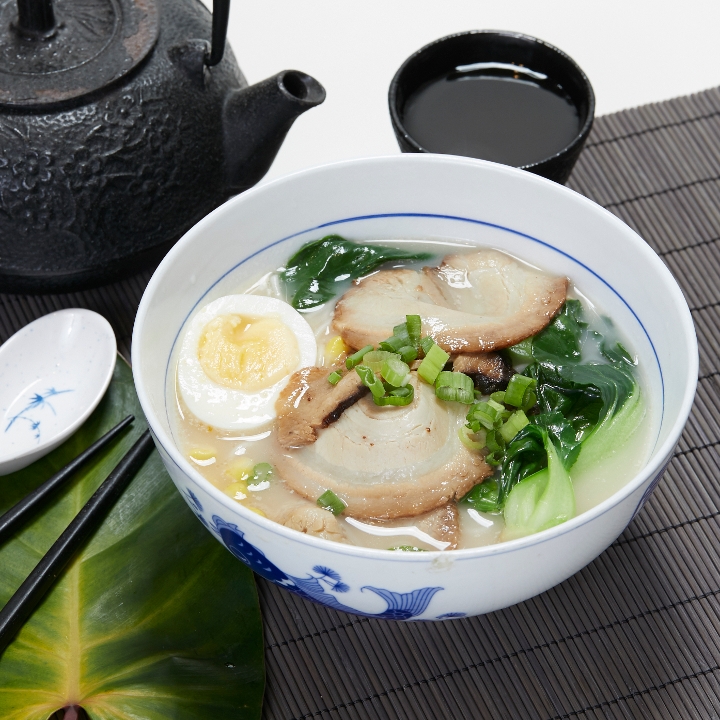 Pork belly in rich pork broth, hard boiled egg and bok choy. Made with wheat noodles.