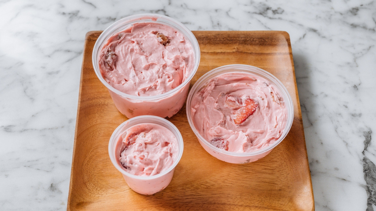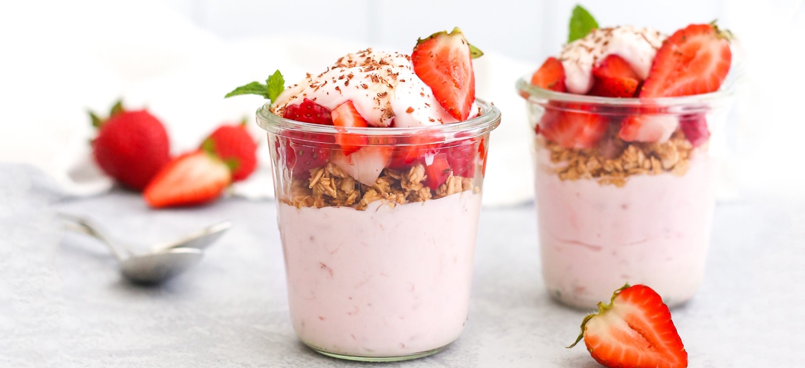 Non-fat Strawberry Yogurt Served with Mixed Berries & Homemade Granola.