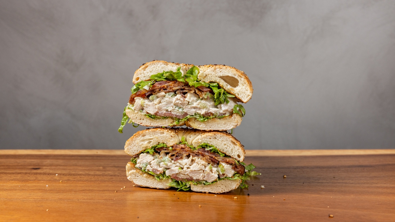 Homemade chicken salad. Served on your choice of bagel or bread.