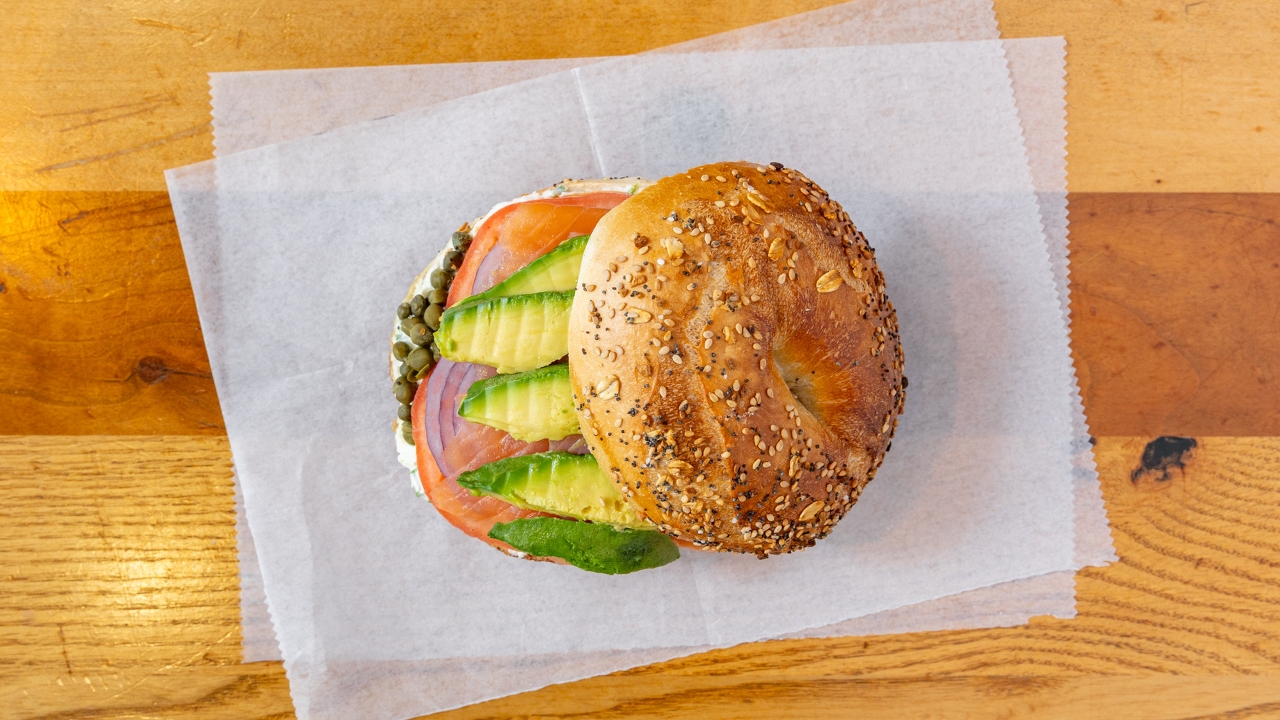Hand sliced pastrami, cured salmon, avocado, cucumber, scallion cream cheese, red onions. Served on your choice of bagel.