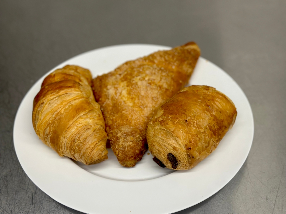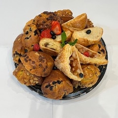 Delicious Homemade Muffins & Danishes: Corn, Chocolate Chip, Blueberry, Banana Nut, Apple Turnover, Regular and Chocolate Croissants.