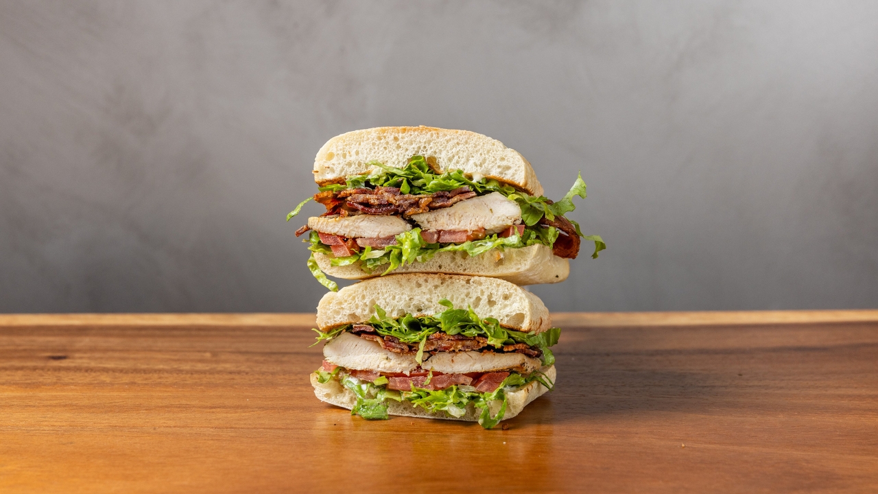 Grilled chicken, bacon, romaine lettuce, plum tomatoes, mayonnaise, ciabatta
