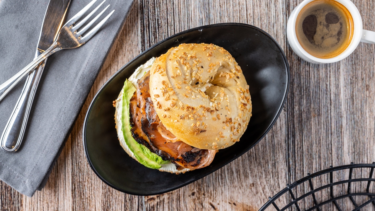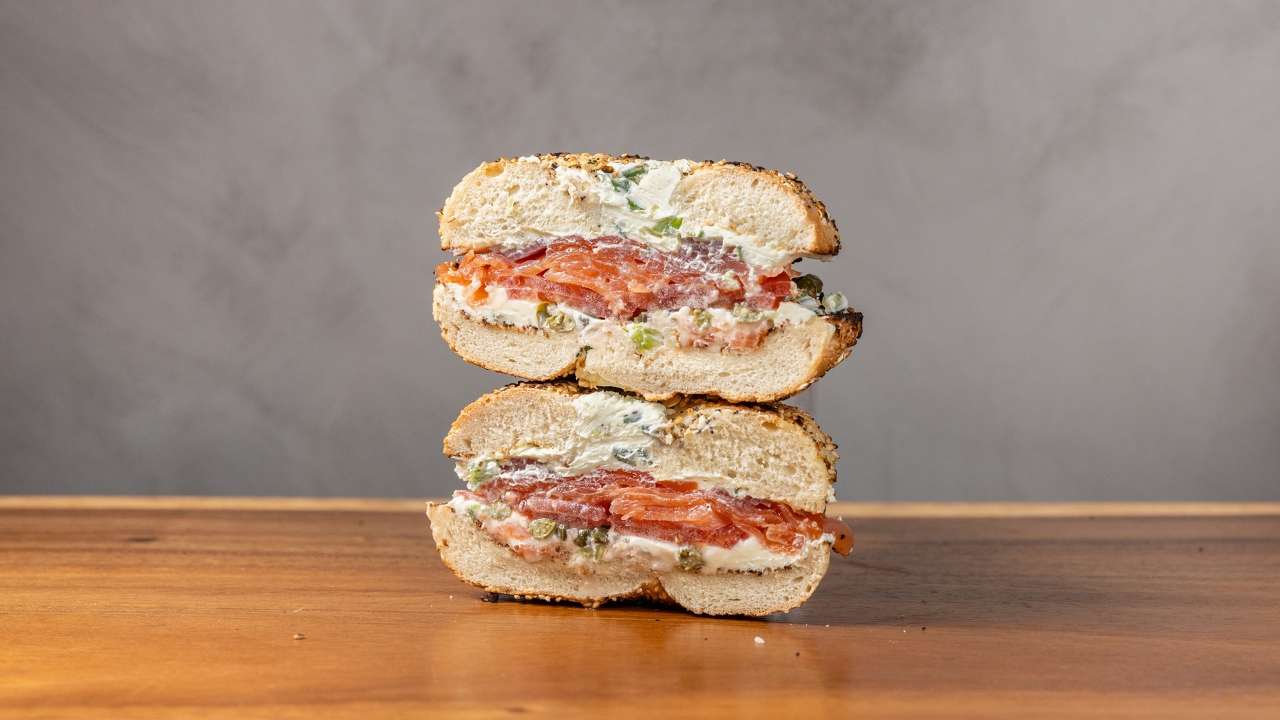 Pastrami cured salmon, Horseradish pickle cream cheese, , cucumber. Served on your choice of bagel.