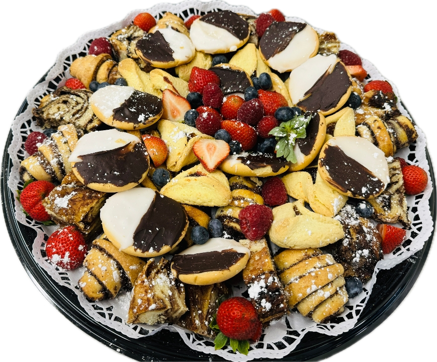 Cinnamon Babka, Chocolate Babka, Mini Black & Whites Cookies, Cinnamon Rugelach and Chocolate Rugelach.