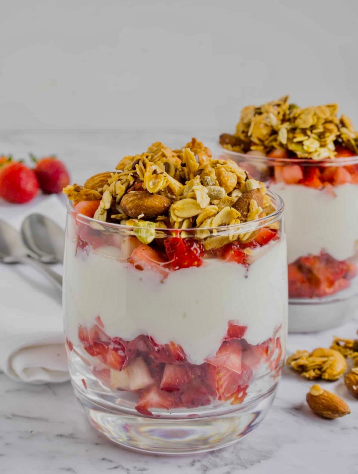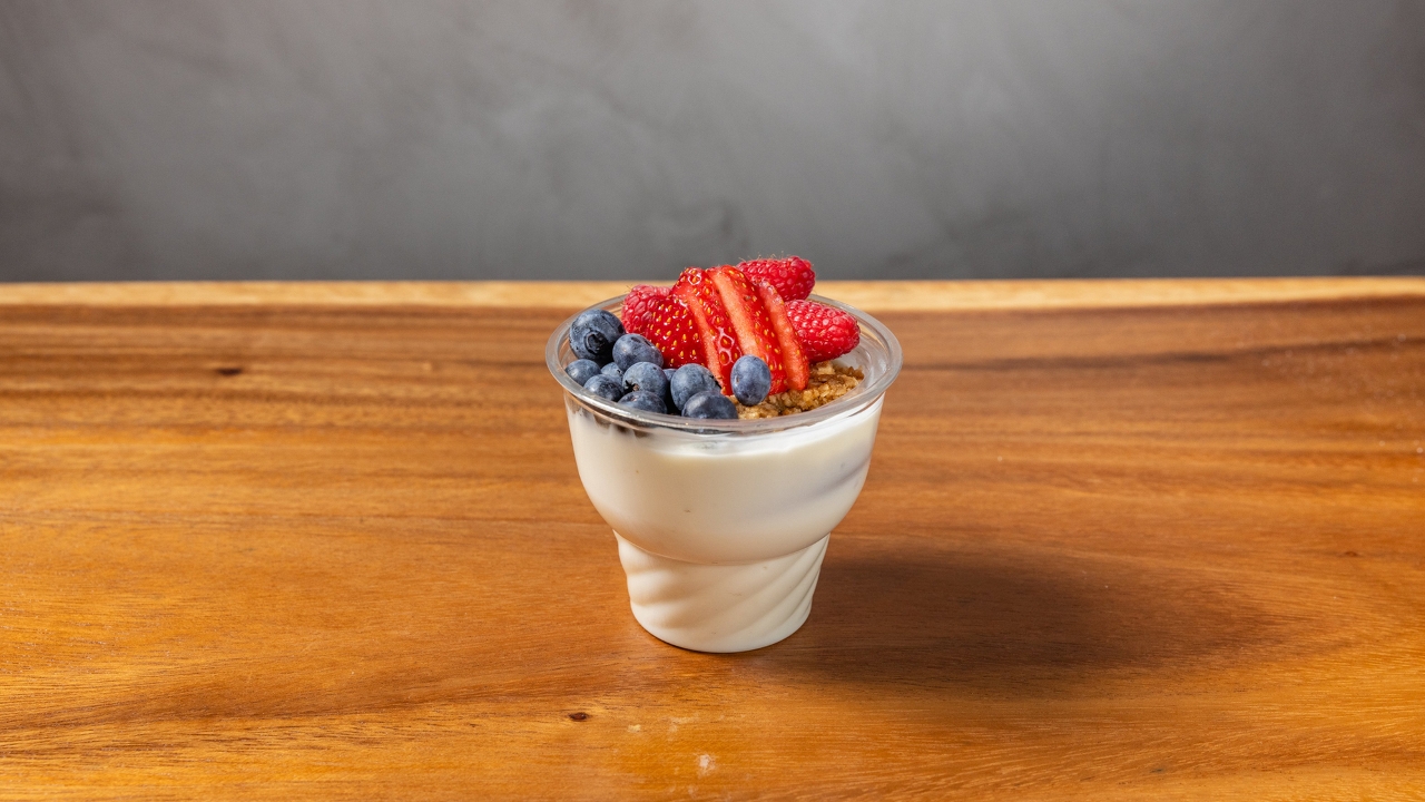 non-fat plain Greek Yogurt served with mixed berries and Homemade granola.