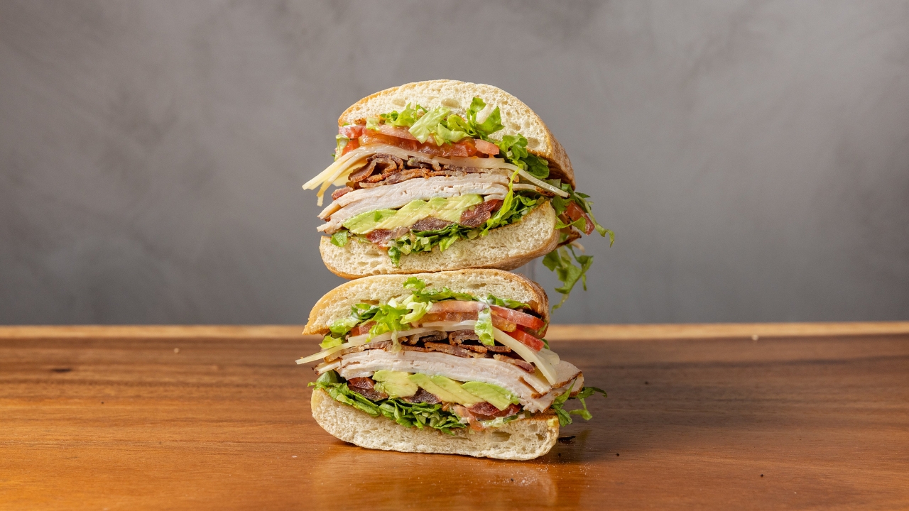 Smoked turkey, avocado, swiss, bacon, romaine lettuce, tomato, mayo