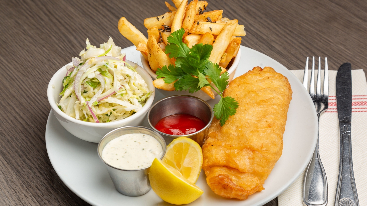 4 gluten free, hand sliced and battered. With side of honey dijon. Add cajun fries +5