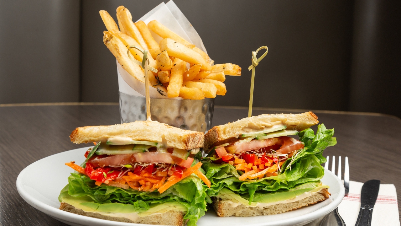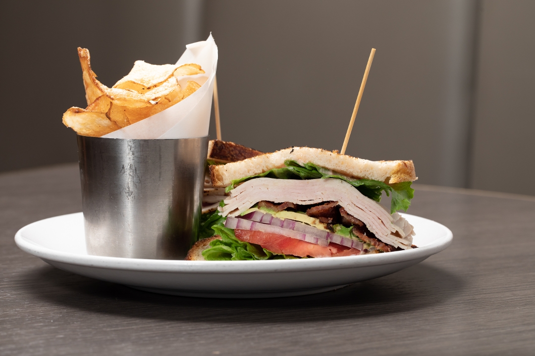 Bacon, lettuce, avocado, tomato, herb aioli on toasted sourdough with vinegar chips
