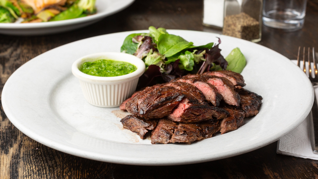 10 oz. New York strip steak , creamed spinach, herb fries. (Gluten-free)