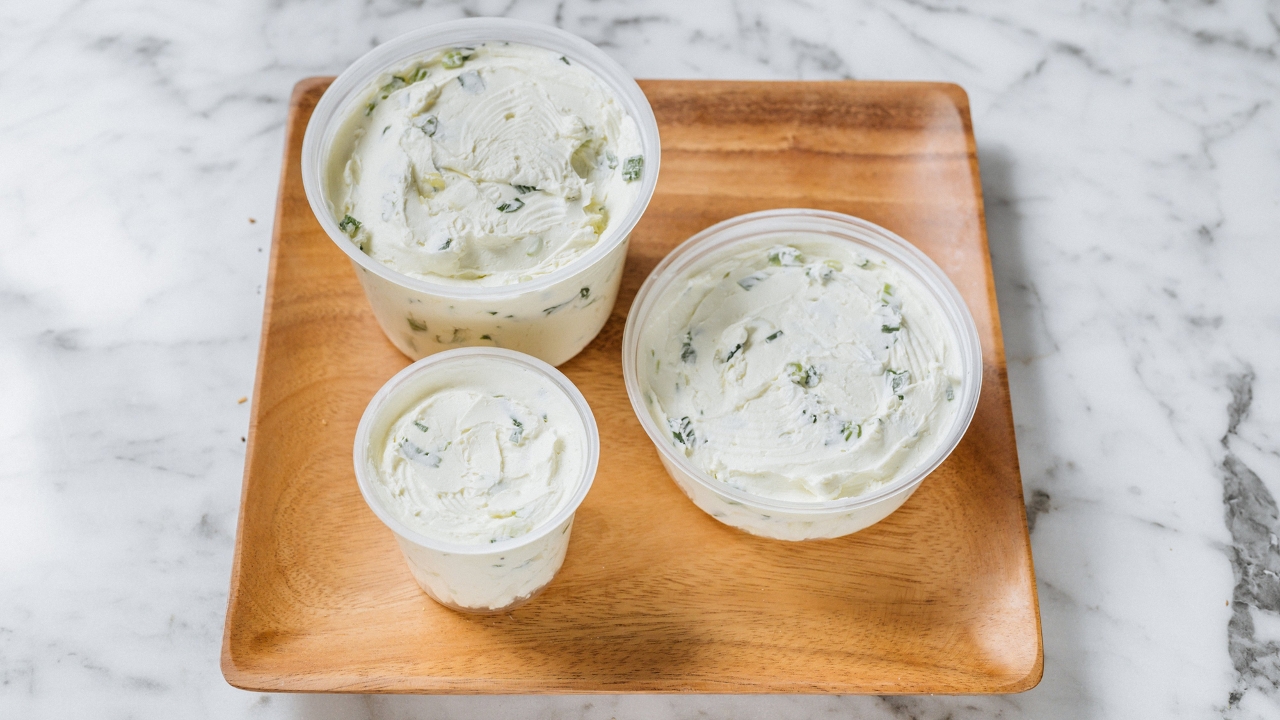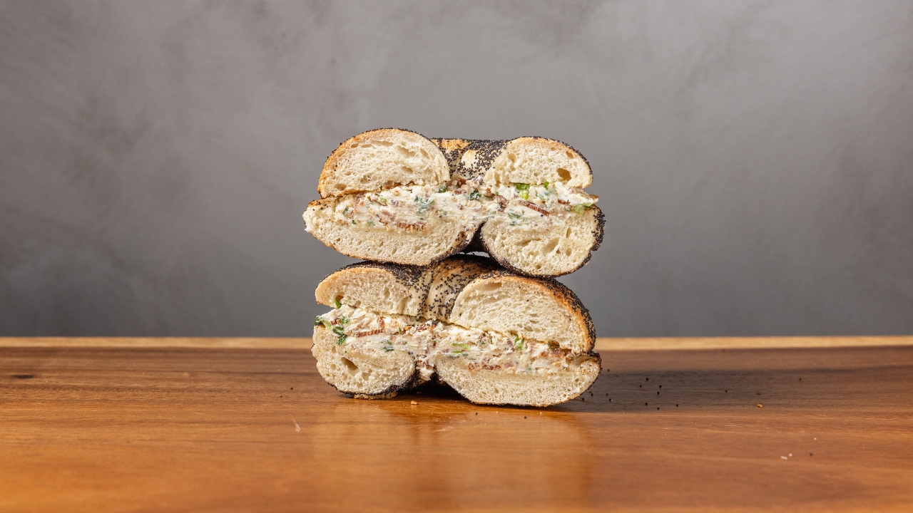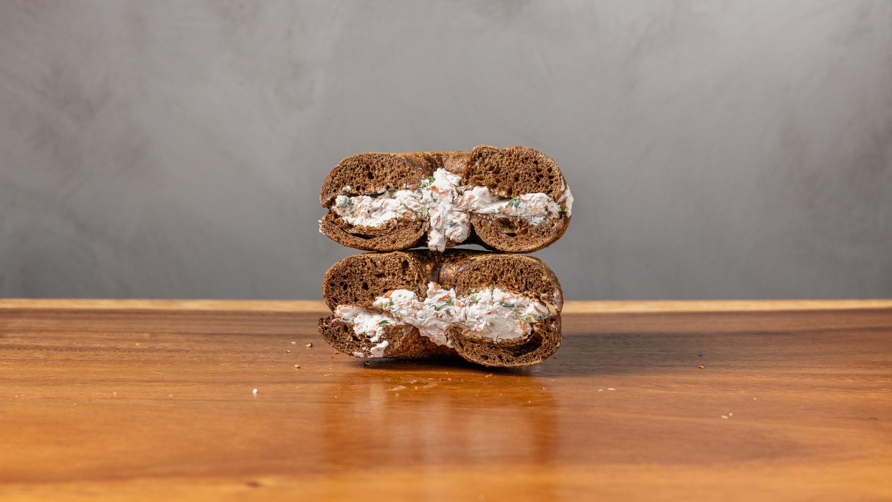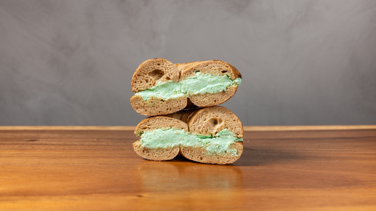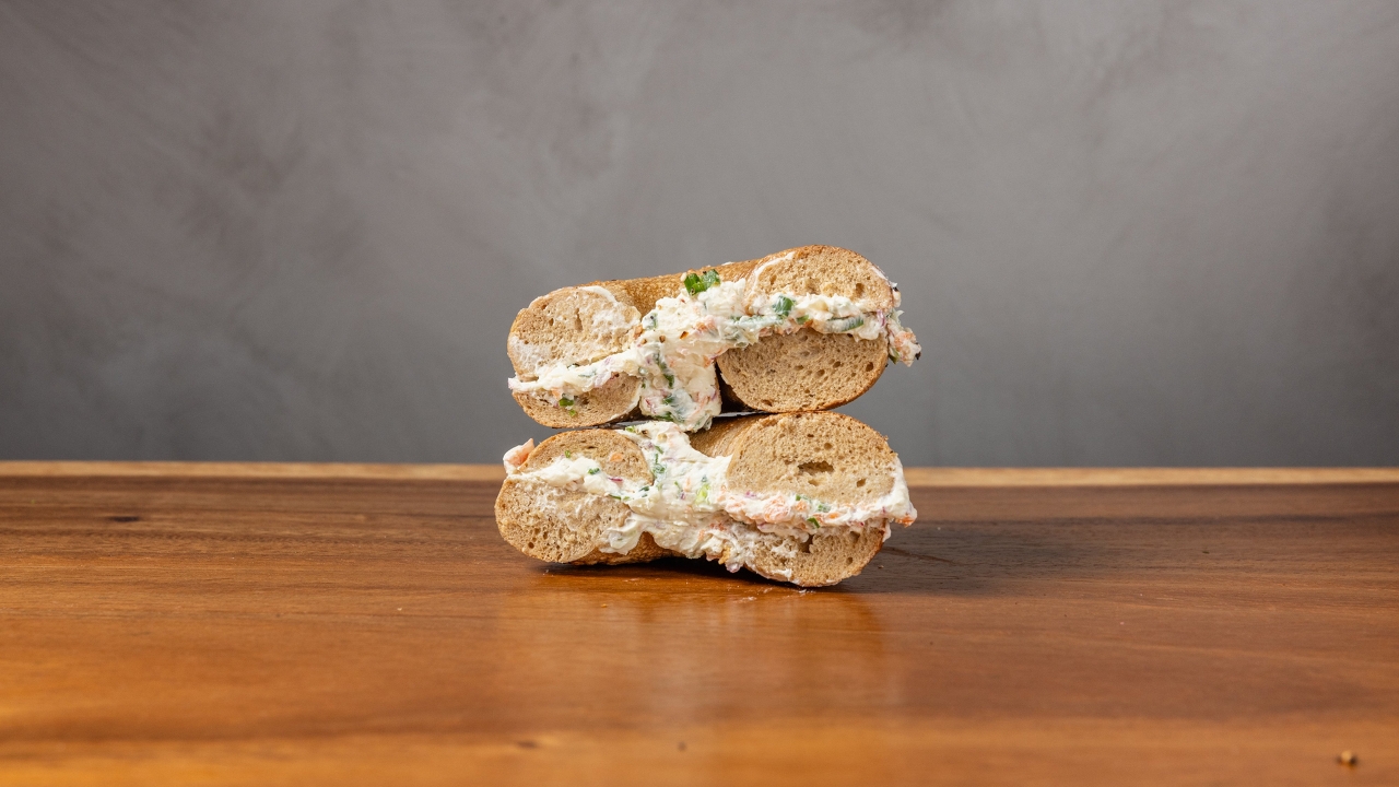 Dairy free spread. Served on your choice of bagel.