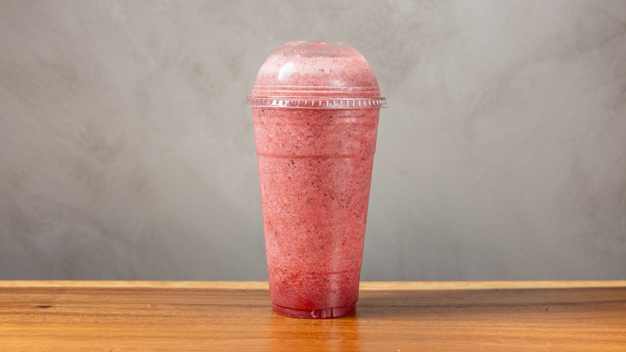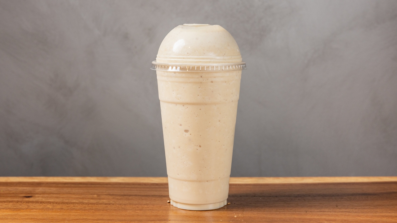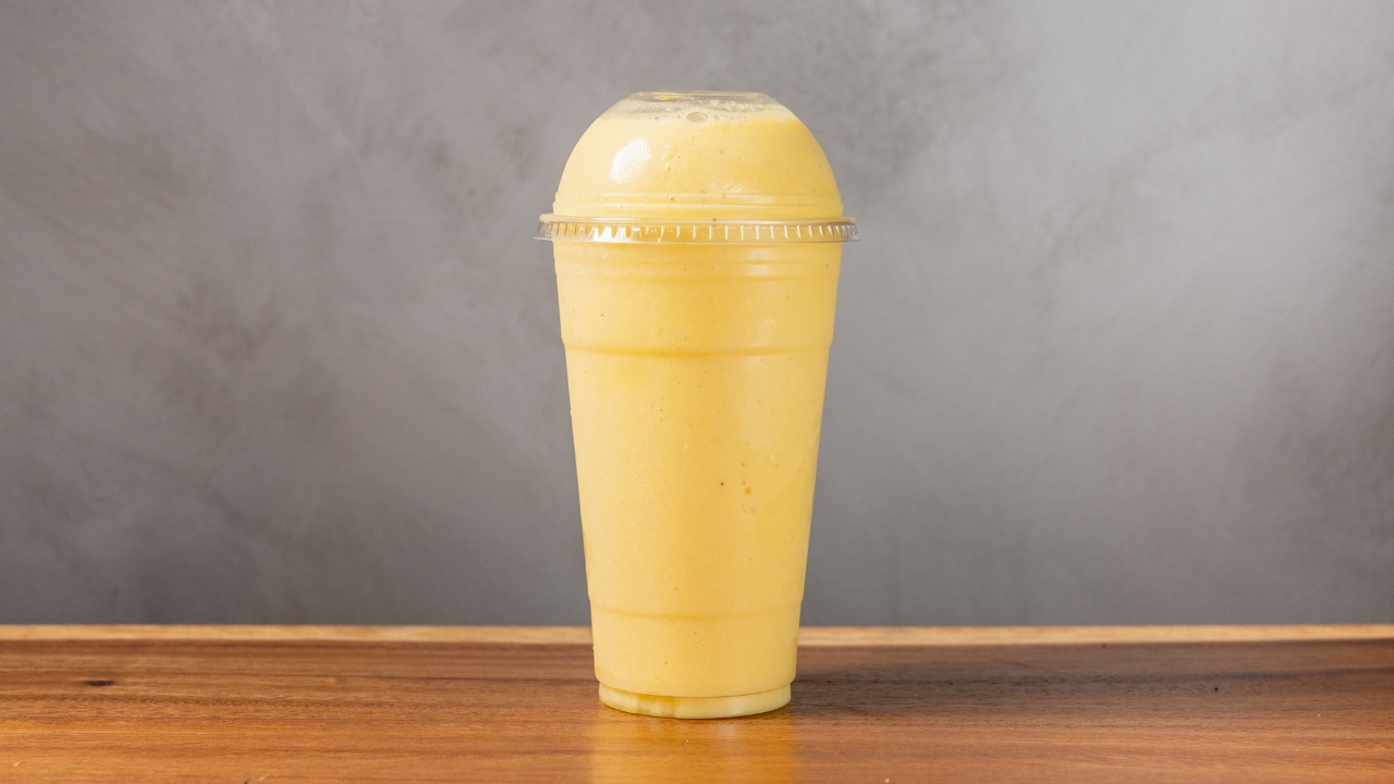 Non-fat yogurt, mango, banana, pineapple juice, and whey protein.