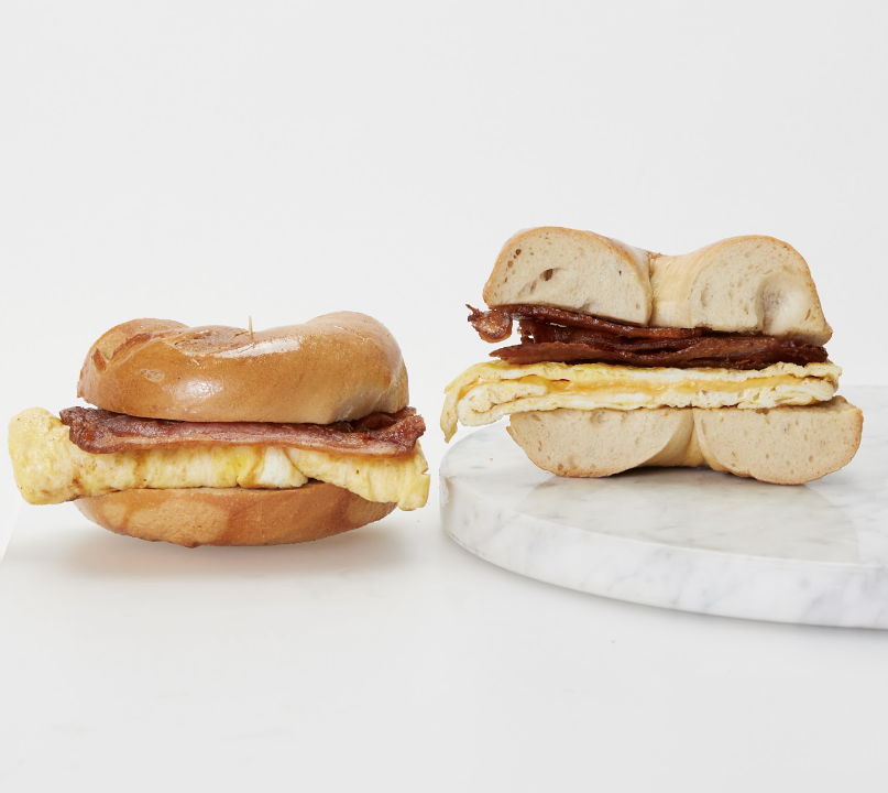 Two eggs, three strips of bacon, served on your choice of bagel.