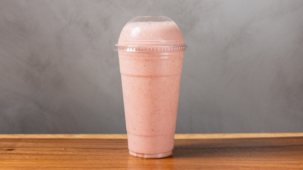 Non-fat yogurt, strawberries, bananas, orange juice, and whey protein.