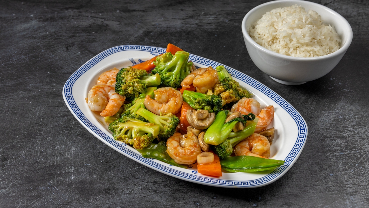 Chicken, pork, & shrimp w. mixed Chinese vegetables