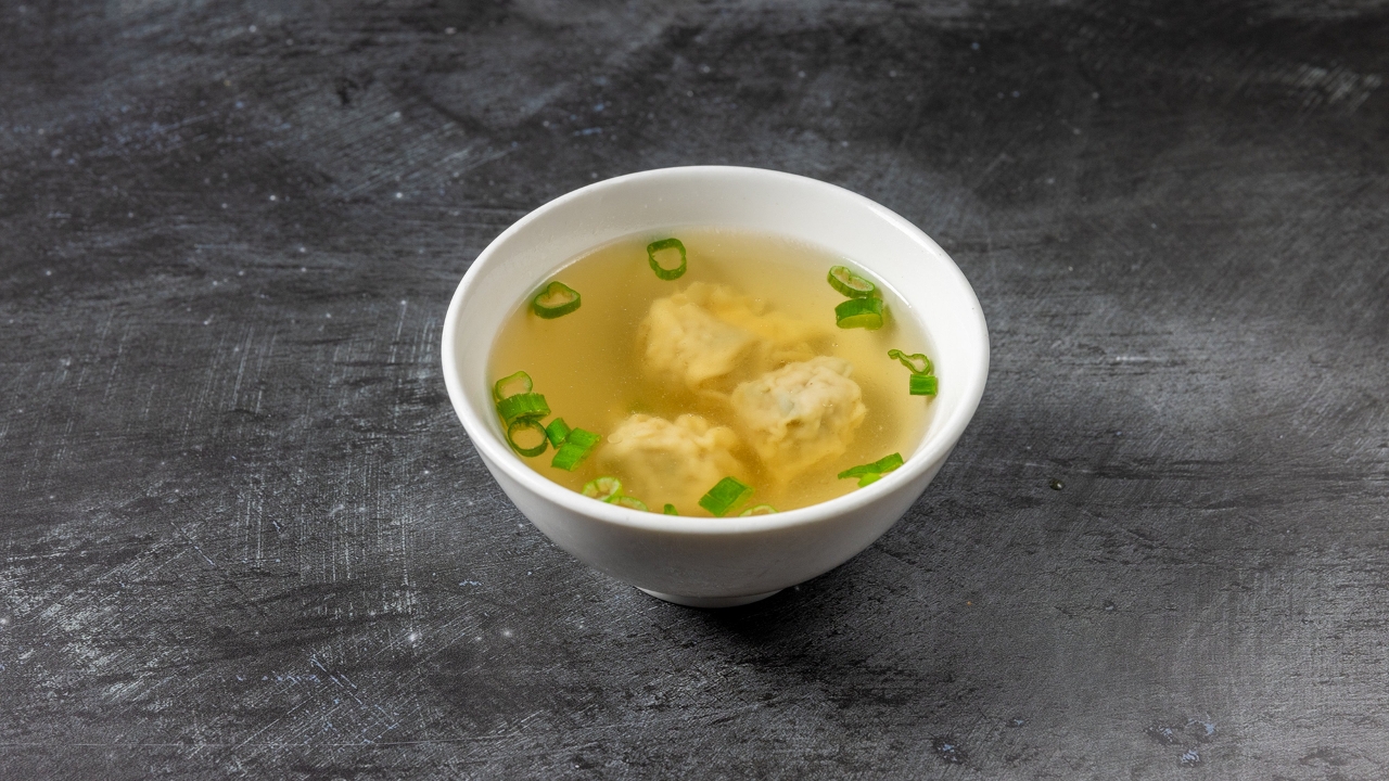 6 wontons, bok choy, seaweed, dry shrimp, scallions.