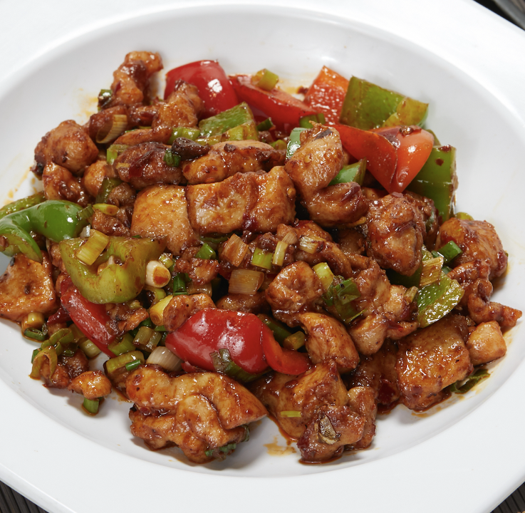 Chicken and bell peppers in a spicy bean paste. (Gluten free without spicy bean paste)
