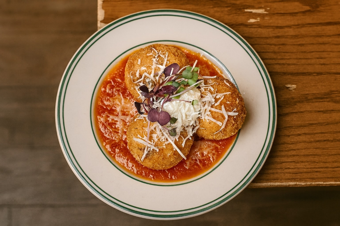 3 fried risotto balls ( mozzarella, truffle emulsion, oyster mushrooms) served with marinara (GF)
