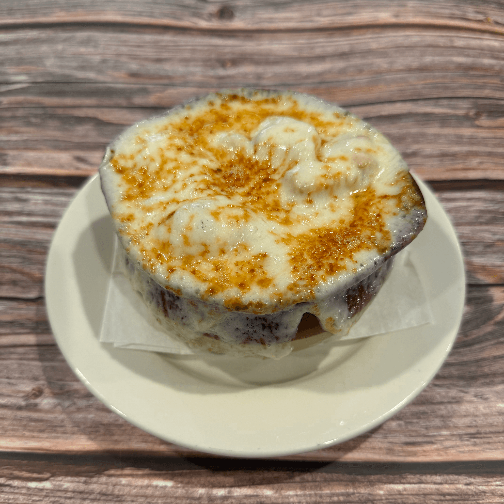 With bacon, mushrooms, grilled onions & mozzarella