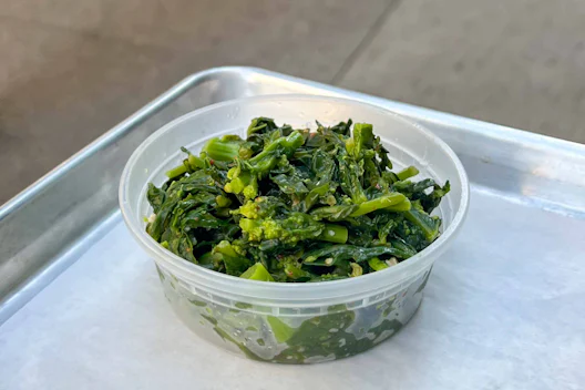 Broccoli rabe with lemon, garlic oil, and chili flakes.
