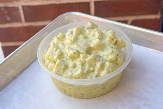 Smashed Chipperbec potatoes and pickles tossed in our dill pickle aioli.