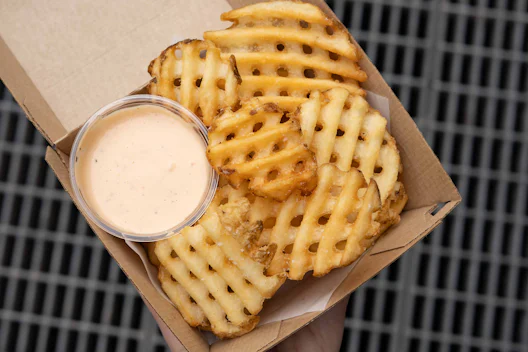 Twice cooked waffle fries with our house dipping sauce. Sauce Contains: Egg