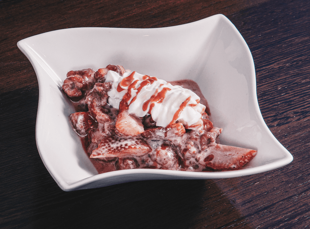 Made as only Maria can, fresh fruit, genuine maple syrup, cinnamon, butter