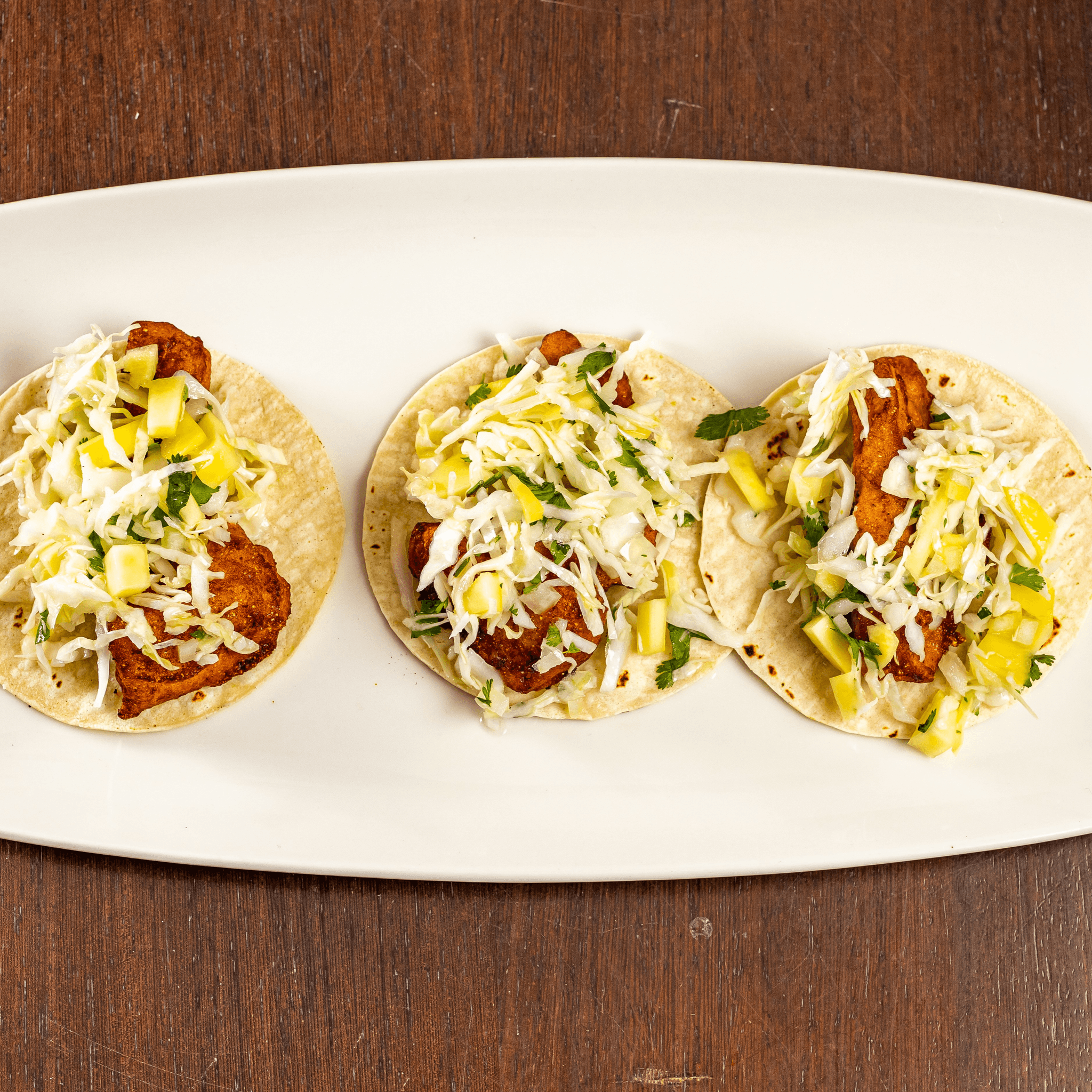 Fresh fish, Baja beer battered and lightly fried, lime juice, cole slaw, and spicy salsa