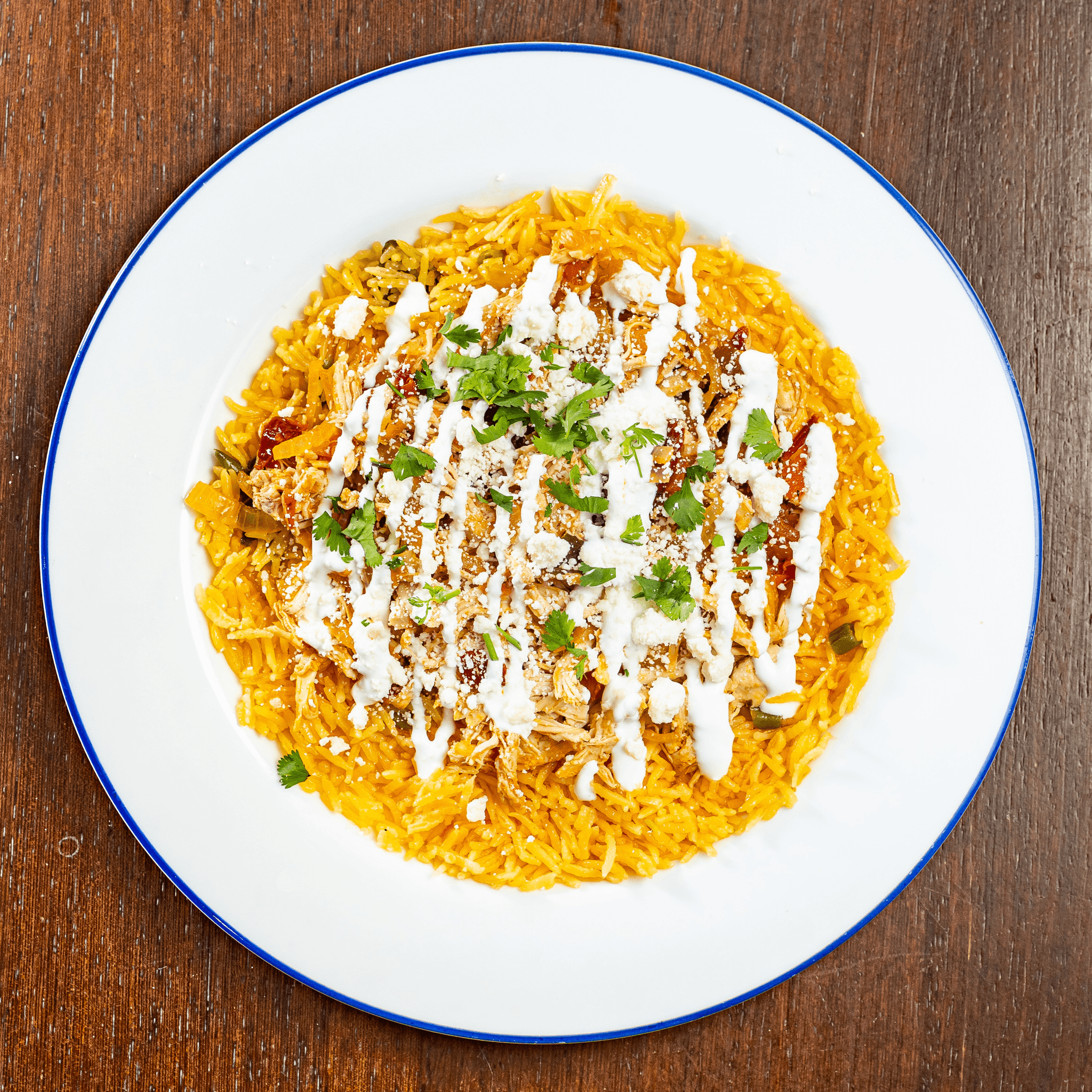 Stewed chicken breast, onion, chipotle peppers, drizzle of sour cream, and a sprinkling of cotija cheese