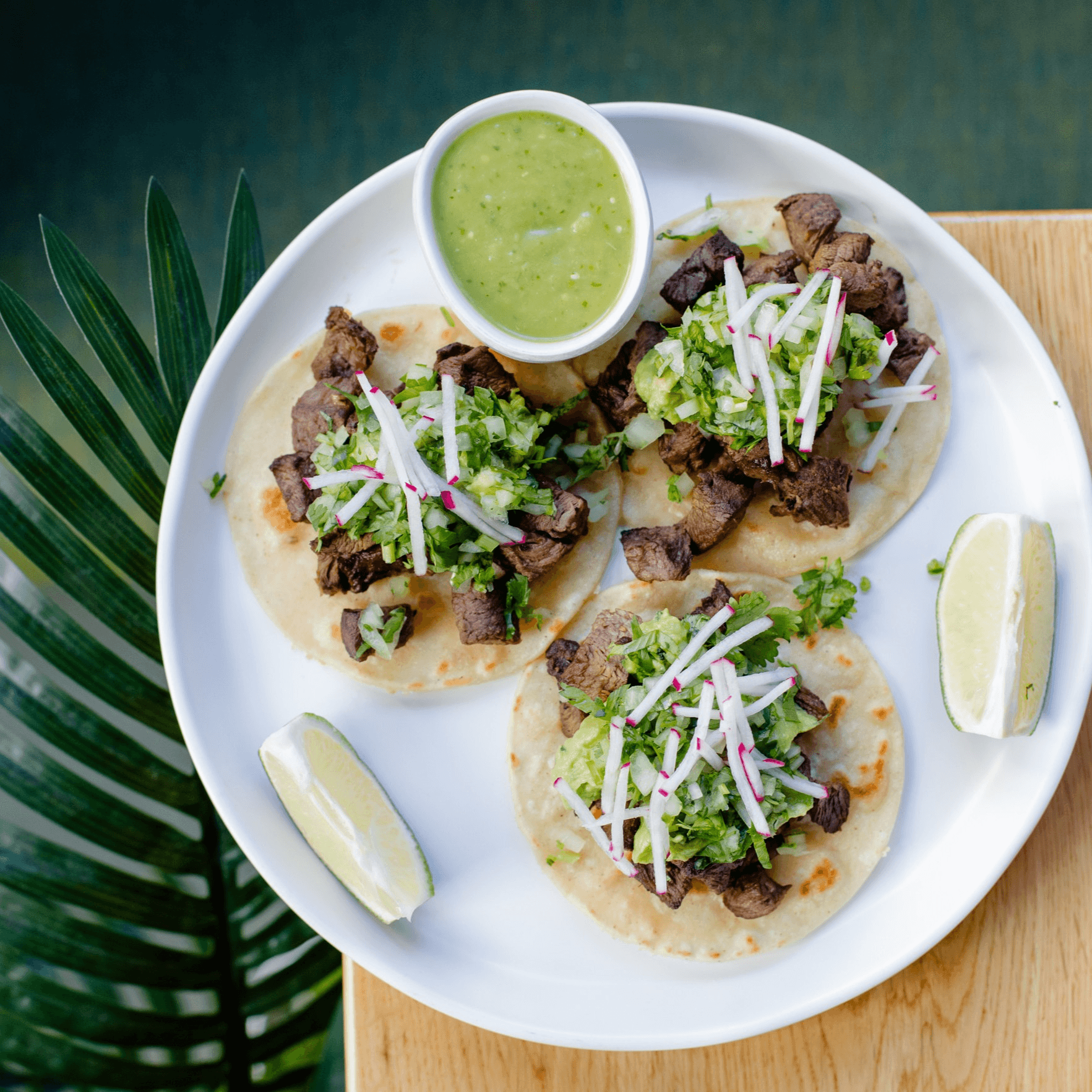 (3 per order) served with onions, cilantro, salsa verde, radish