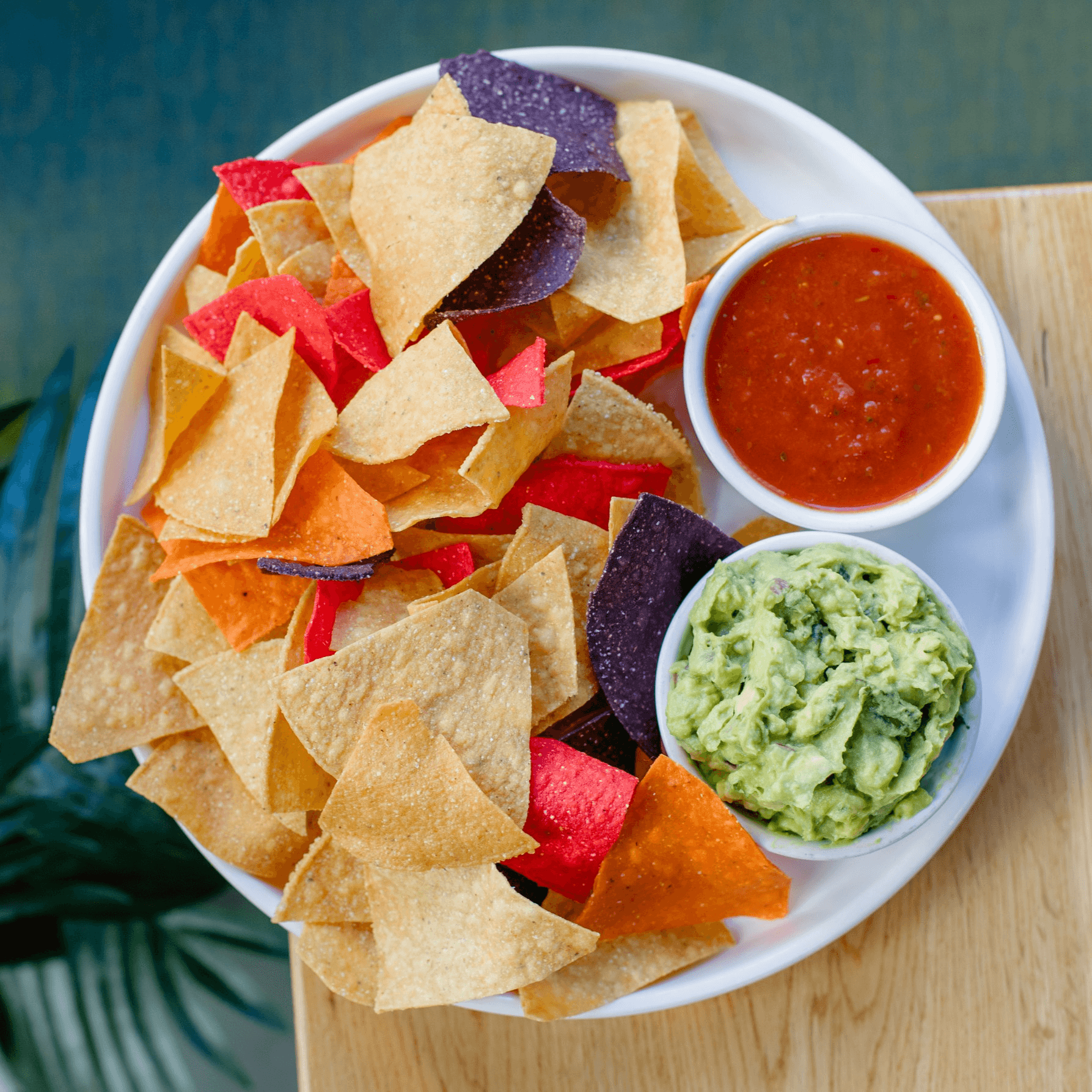 crispy corn tortilla chips, house made guacamole, fire roasted tomato salsa