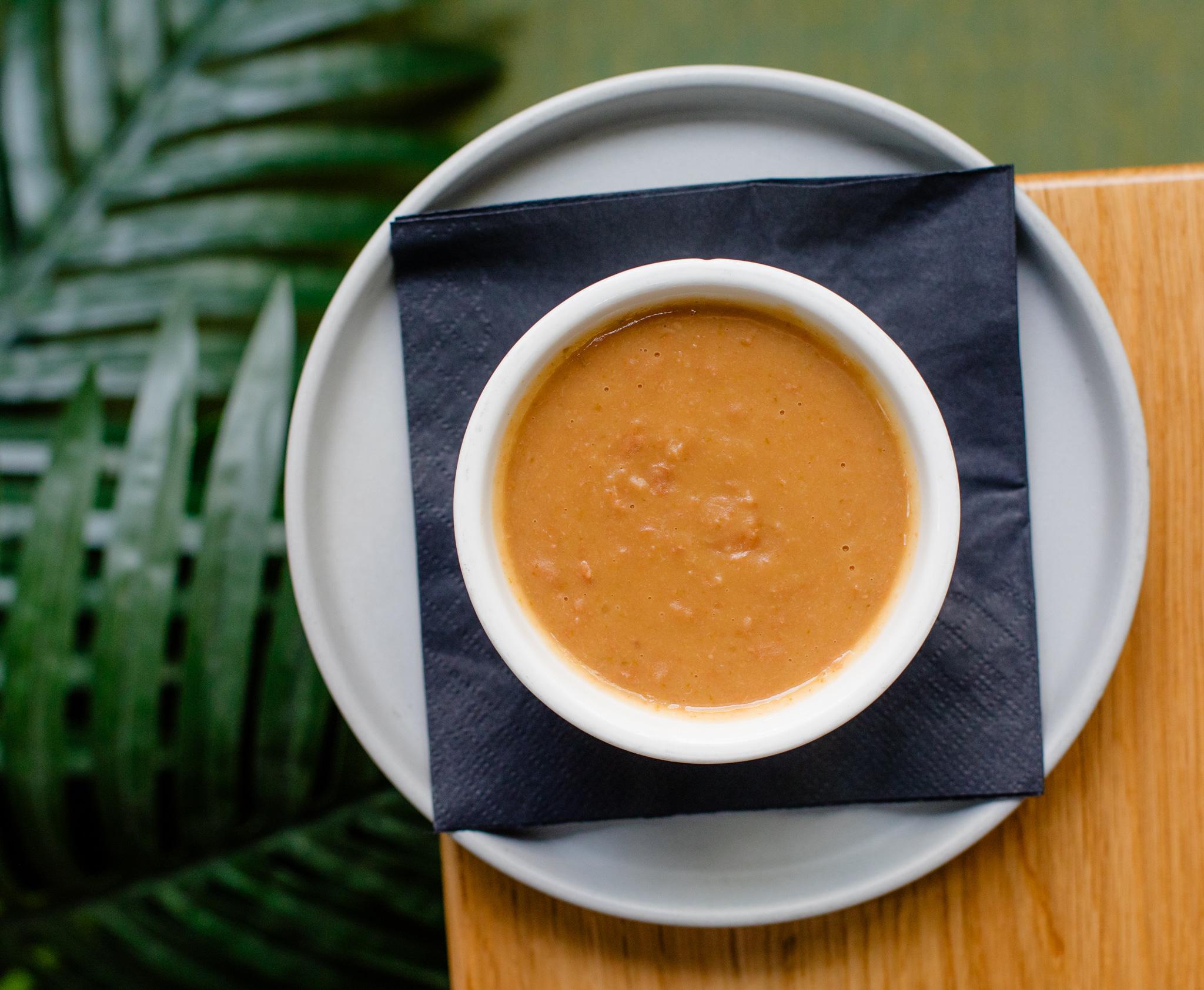 Two Sunny-Side Up Eggs, Refried Beans, Tomato Sauce, Queso Fresco, Corn Tortilla, Avocado, Micro Cilantro.
